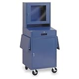 Mobile Computer Cabinet, W 24 1/2, Blue Computer Security CabinetsNos. 1UG95 to 1YCB4Feature separate locking upper and lower compartments. Fit most 19" CRT monitors. Mobile units roll on 5" casters, except Strong Hold units have 6" casters. Powder-coated finish, except Strong Hold are gray enamel. Vented back. Strong Hold computer cabinets are all-welded and constructed from 12-ga. steel. Feature 3-pt. locking system, wraparound design, and 3/16" steel legs. All units, except 10A009 feature a 7-outlet surge protector and fans for ventilation. 10A009 features a pull-down lid. Gray enamel finish. Slide-out keyboard tray can be accessed while top and bottom compartments remain locked. 20-3/4"W x 21-1/4"D x 23-1/2"H lower compartment has 1 fixed and 1 adjustable shelf. Locking bottom doors in front and rear for easy access. 1UG95 and 1UG96 have an acrylic top compartment window for viewing most 20" monitors. 1YCB1, 1YCB2, 1YCB3, 1YCB4 include sloped work surface, roll-out lower shelf, and 2 folding wing shelves. Some assembly required. Mobile Cabinets Mobile Computer Cabinet, For LCD Flat Panel, Overall Width 24 1/2 In, Overall Depth 22 1/2 In, Overall Height 62 3/4 In, Compartment Width 21 1/2 In, Compartment Depth 8 3/4 In, Compartment Height 17 1/2 In, Powder Coat Finish Blue, Material Steel, Assembled Partially, Includes (4) 5 In Polyolefin Casters, 2 Rigid and 2 Swivel With Brake and 2 Folding Wing Shelves  | Mobile Computer Cabinet, W 24 1/2, Blue