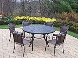 | ✚✚✚ Mississippi 7 Piece Dining Set 2205-90079-C-7-BK Features: -Table top has an opening for an umbrella.-Hardened powder coat for years of beauty.-Fade, chip and crack resistant. Includes: -Includes one table and six resin wicker dining chairs. Construction: -Rust free cast aluminum, steel and resin wicker construction. Color/Finish: -Finish: Black. Assembly Instructions: -Stainless Steel, galvanized or brass assembly hardware. Dimensions: -Overall dimensions: 29" H x 60" W x 60" D. Collection: -Mississippi collection. Warranty: -1 Year warranty.