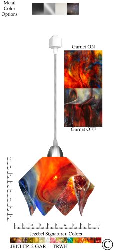 Signature Flame Track Light Size: Small, Metal Hardware Finish: Nickel, Shade Color: Garnet?JRNI-FP12-GAR-TRWH Size: Small, Metal Hardware Finish: Nickel, Shade Color: Garnet Features: -Track light.-Medium-based socket.-UL certified.-Made in USA.-Bulb type: Halogen.-Dimensions of track attachment: 3" high, 1.37" wide, 1.37" long and the nickel metal cap for the glass: 2" high, 2.75" diameter.-Adjustable cord dimension: 8.5 Feet.-Volts: 120. Construction: -Glass construction. Dimensions: -Overall dimensions: 7" H x 8.5" W x 8.5" D. Collection: -Signature collection. Warranty: -Manufacturer provides two years warranty.