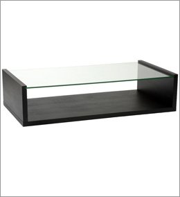 #Stained veneered wood base. Clear tempered glass top. 1 set, 2 boxes. W: 53 D: 28 H: 13 WEIGHT: 108 lbs